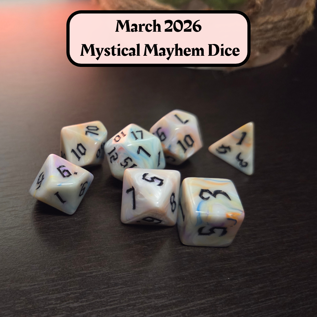 Dice of the Month "Mystical Mayhem Dice" and "Journeys Outside the Keep" Newsletter