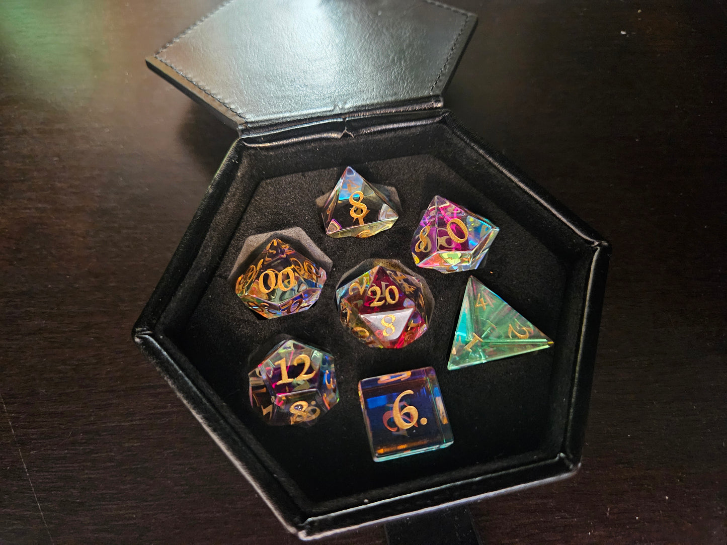 These stunning dice are beyond any dice we have ever thought we could own. They are truly a piece of art and mesmerizing to look at and hard to believe they are real.
